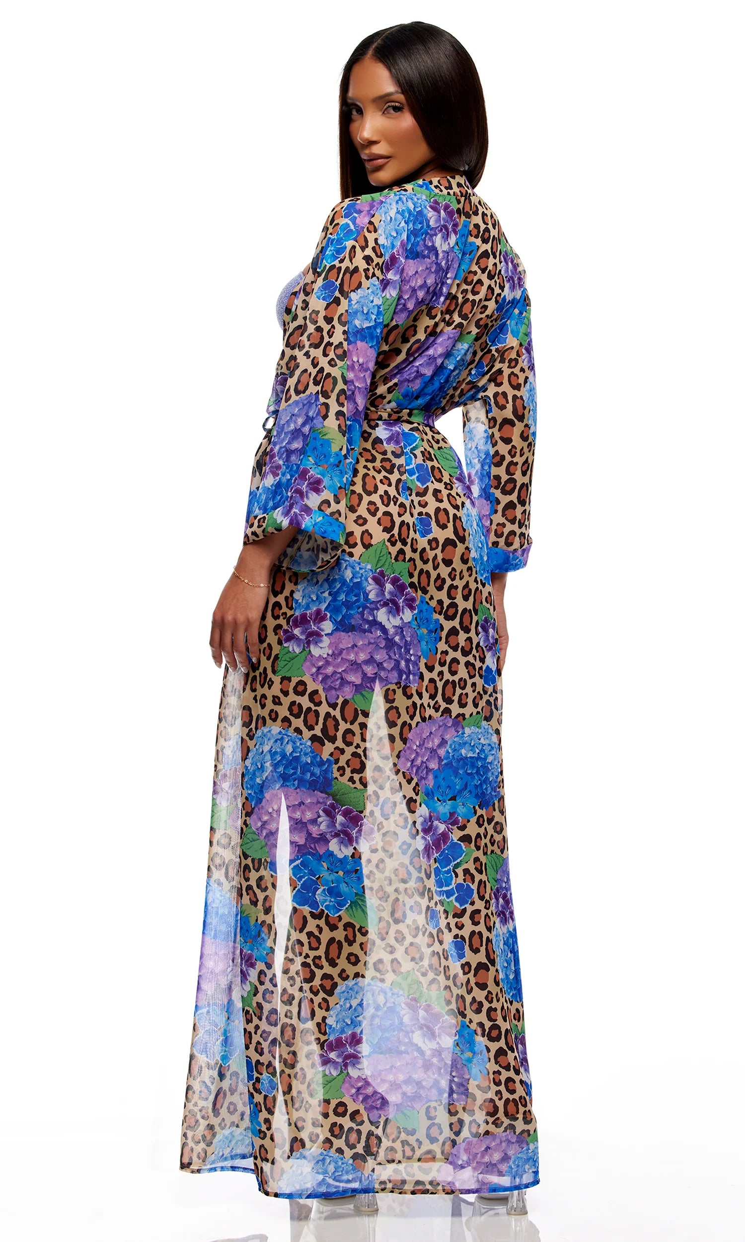 445516 Termoli Mesh Pool Kimono - Cheetah Blue