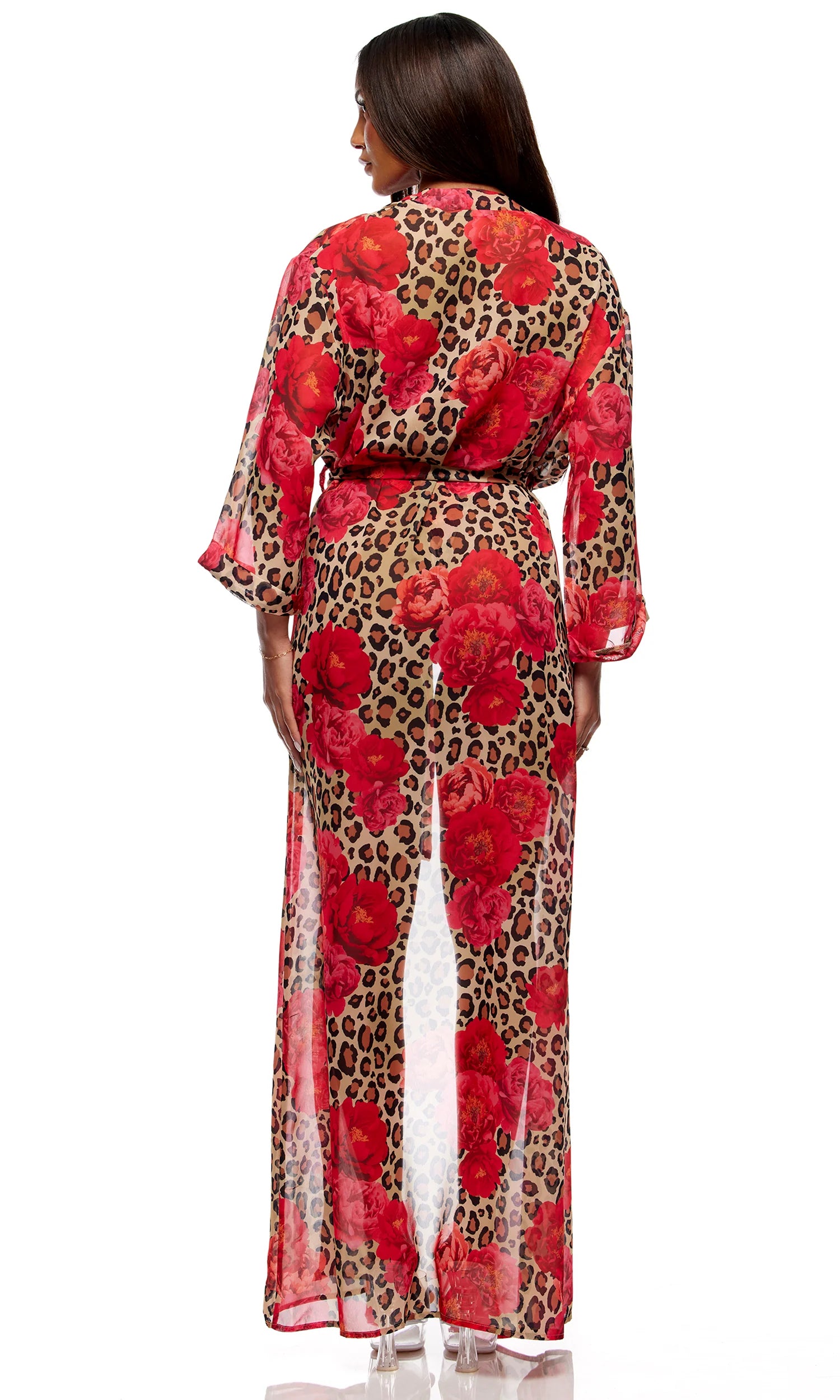 445516 Termoli Mesh Pool Kimono - Cheetah Coral