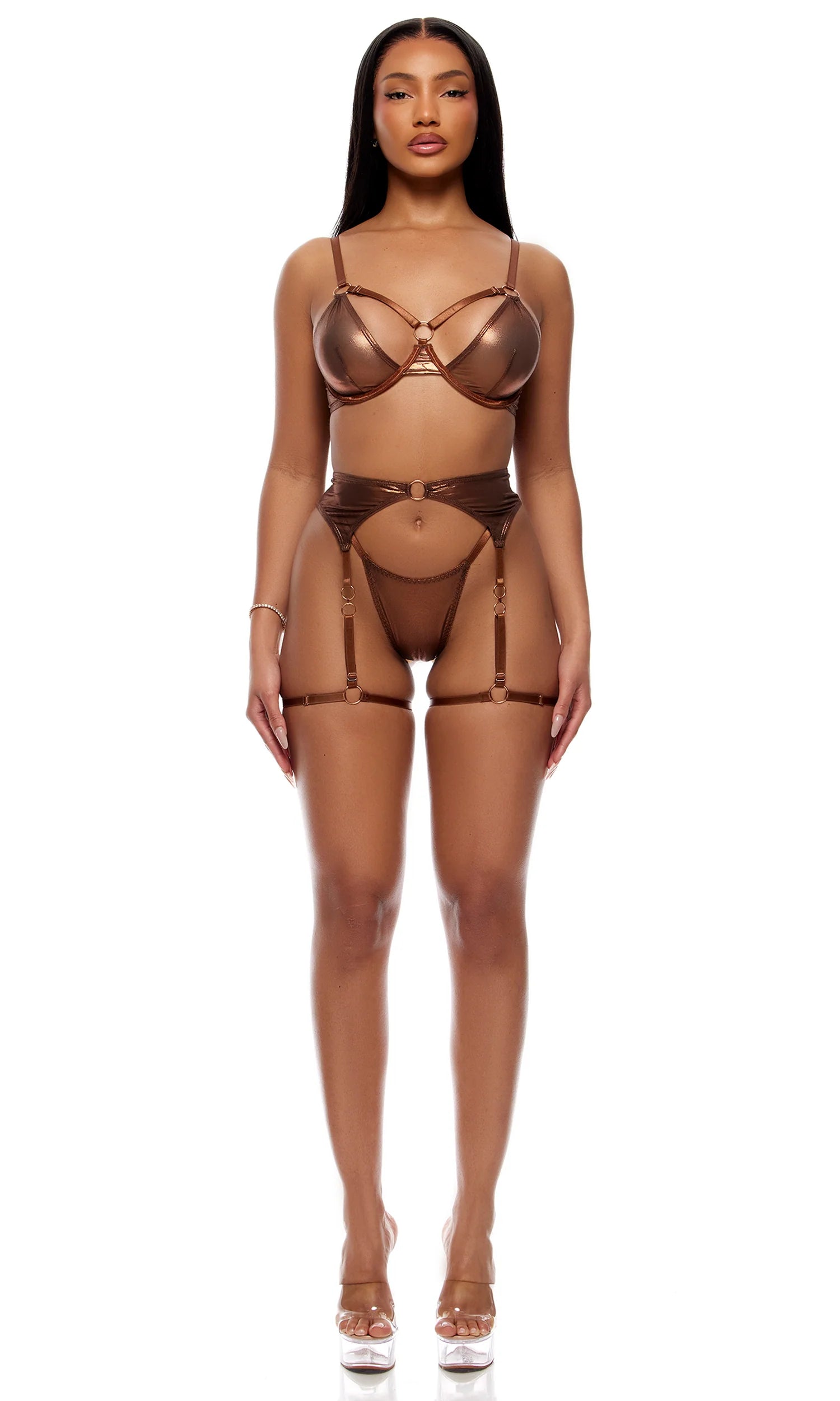 774733 Liquid Metal Metallic Mesh Bra and Garter Belt Lingerie Set - Cooper