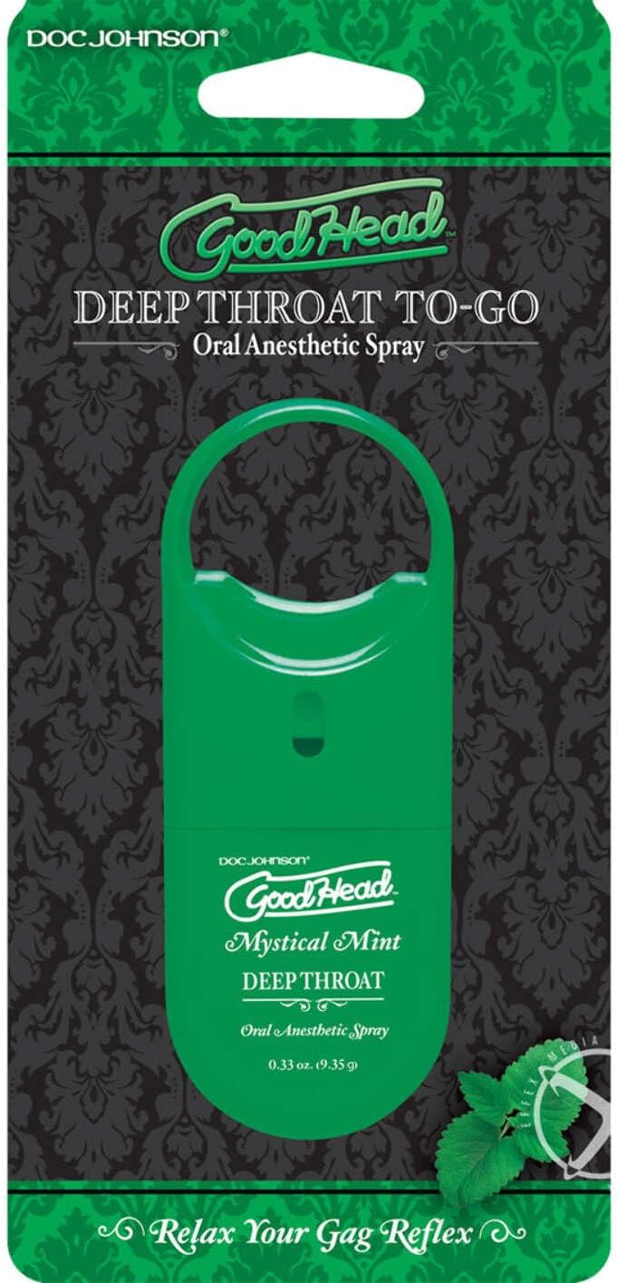 GoodHead Deep Throat Spray To-Go ofrece un delicioso agente calmante suave. Ninguna incomodidad y placeres profundos. Un sabor a menta mística. Libre de parabenos y azúcar.
